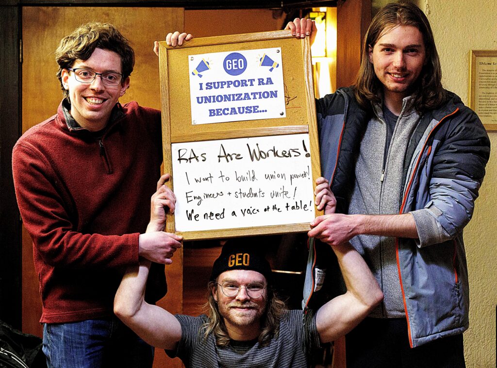 GEO organizers promote the RA unionization drive. Photo by Sandra Voskoboynikova, used by permission