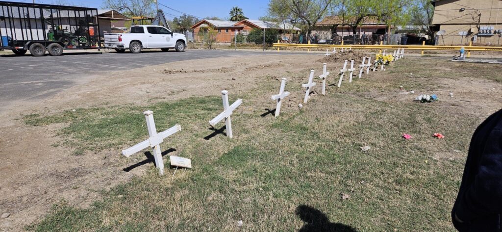 Potter’s field in Eagle Pass for unidentified bodies found along the border area. Photo courtesy of Witness at the Border delegation, March, 2025
