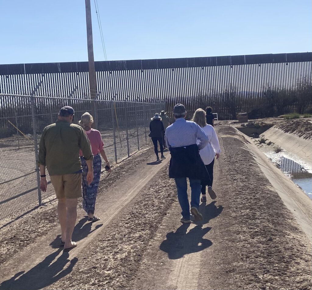 Members of the Witness at the Border delegation examining changes to the detention center and wall outside El Paso, TX. Photo by Amerika Garcia Grewal, The Border Vigil, FB.com/BorderVigil, used by permission