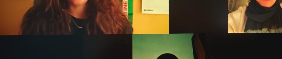 Screenshot of Zoom video by the author. Upper left: Jessica Clotfelter; upper right: Dua Aldasouqi; lower center: Asma